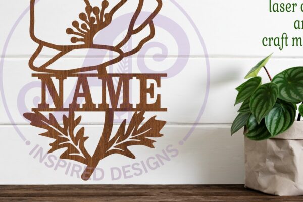 Intra απο ξύλο plywood 3mm-4mm πάχος – Πινακίδα ονόματος παπαρούνας Πρότυπο κοπής λέιζερ Δίασταση 20×20 cm INTRAFABR-78906519
