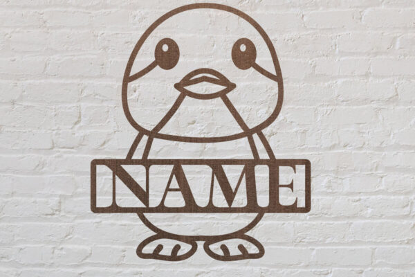 Intra απο ξύλο plywood 3mm-4mm πάχος – Πινγκουίνος με λέιζερ κομμένο όνομα Δίασταση 20×20 cm INTRAFABR-75896031