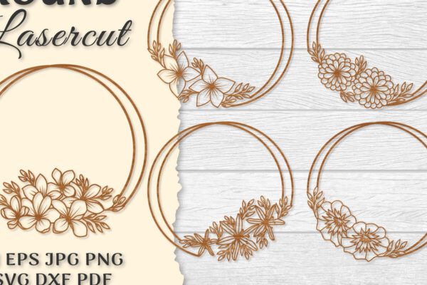 Intra απο ξύλο plywood 3mm-4mm πάχος – Πλαίσιο Λουλούδι Στρογγυλά ΔΕΜΑΤΑ κοπής με λέιζερ Δίασταση 20×20 cm INTRAFABR-122604684