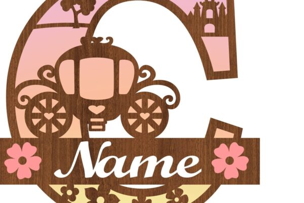 Intra απο ξύλο plywood 3mm-4mm πάχος – Πριγκίπισσα Μονόγραμμα Γράμμα C Αποκοπή αρχείου Δίασταση 20×20 cm INTRAFABR-76567889