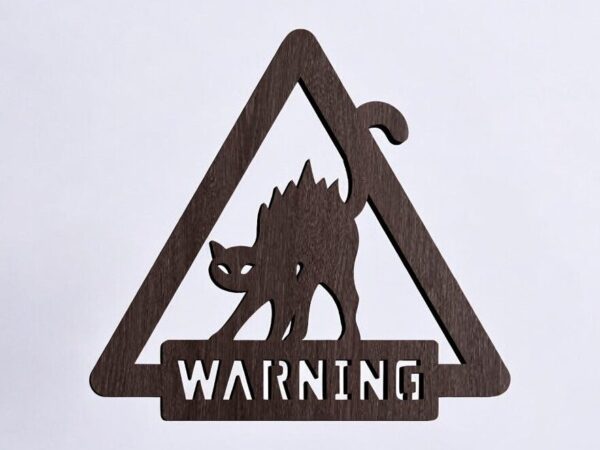 Intra απο ξύλο plywood 3mm-4mm πάχος – Προειδοποιητικό σημάδι τρομακτικής γάτας 10×10 cm INTRAVECTRY-MY542557
