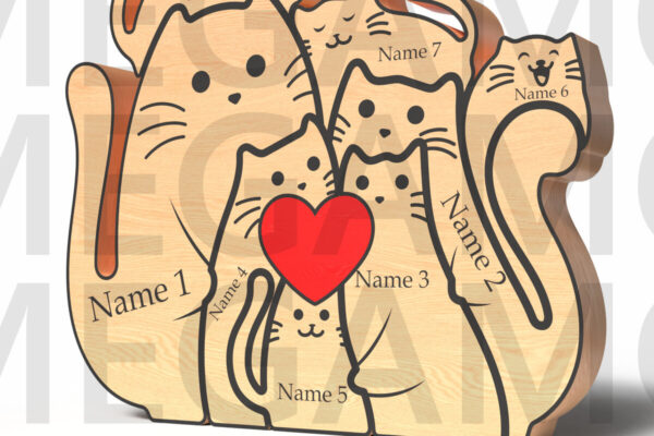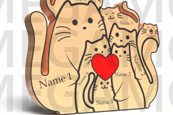 Intra απο ξύλο plywood 3mm-4mm πάχος – Προσαρμοσμένη οικογένεια 8 γατών με καρδιά Δίασταση 20×20 cm INTRAFABR-121637305