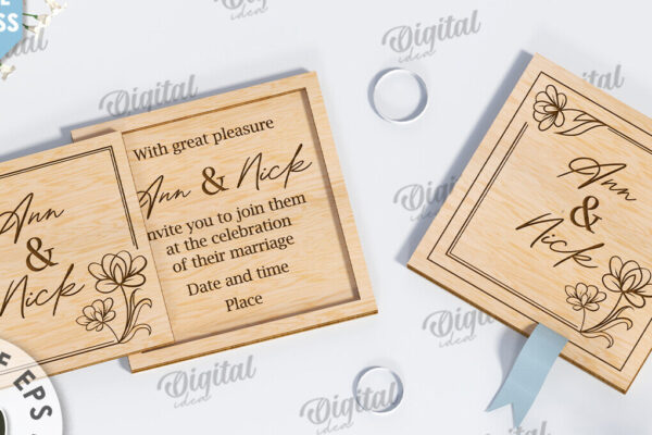 Intra απο ξύλο plywood 3mm-4mm πάχος – Προσκλητήρια Γάμου LaserCut Πακέτο Δίασταση 20×20 cm INTRAFABR-117336918