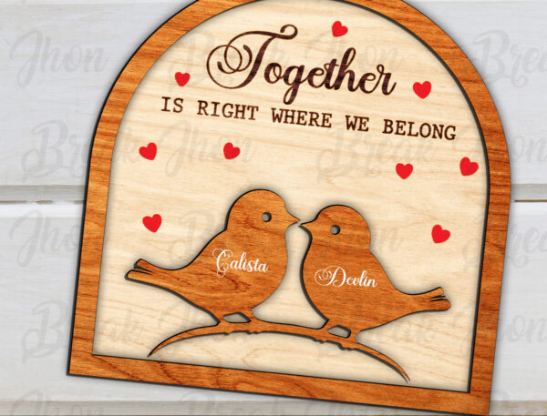 Intra απο ξύλο plywood 3mm-4mm πάχος – Προσωποποιημένο Σήμα Love Birds Δίασταση 20×20 cm INTRAFABR-114048324