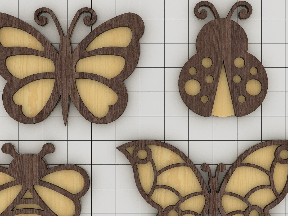 Intra απο ξύλο plywood 3mm-4mm πάχος Πρότυπα λέιζερ Bee Butterfly Ladybug Δίασταση 30×20 cm INTRAFABR-39956554