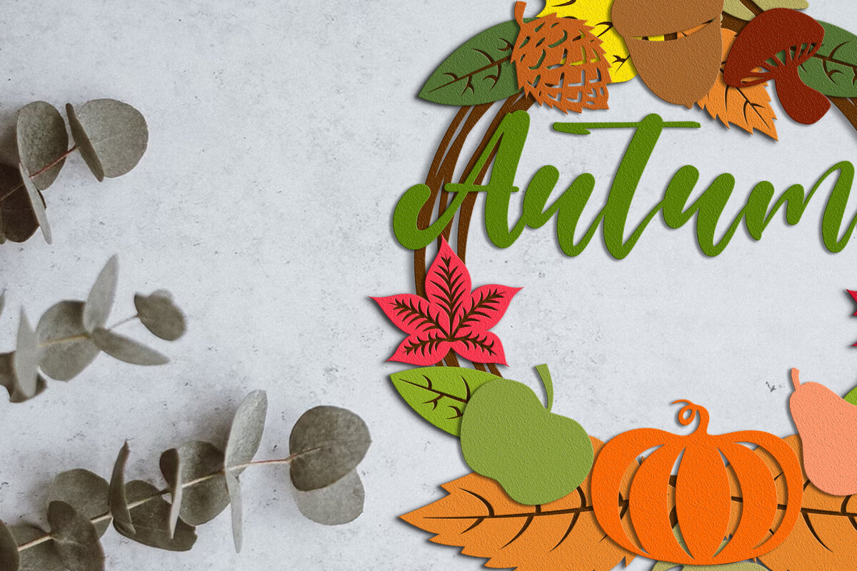 Intra απο ξύλο plywood 3mm-4mm πάχος Πρότυπο διακοσμητικό στεφάνι φθινοπώρου Δίασταση 30×20 cm INTRAFABR-106887472