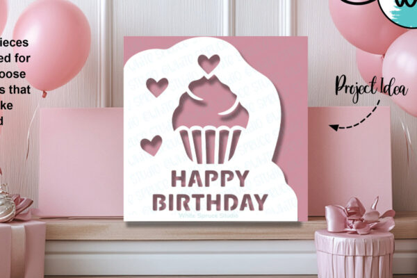 Intra απο ξύλο plywood 3mm-4mm πάχος – Πρότυπο κάρτας γενεθλίων Cupcake Δίασταση 20×20 cm INTRAFABR-117503158