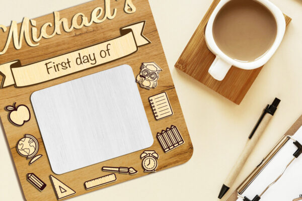 Intra απο ξύλο plywood 3mm-4mm πάχος – Πρότυπο κοπής σχολικής πινακίδας “Πρώτη μέρα”. Δίασταση 12×12 cm INTRAFABR-105160474