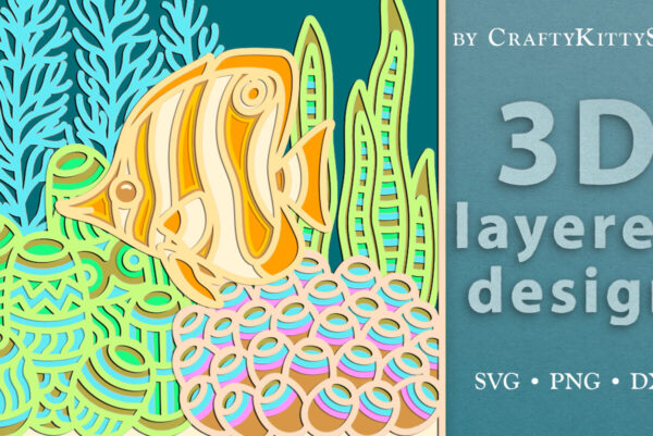 Intra απο ξύλο plywood 3mm-4mm πάχος – Πρότυπο κουτιού σκιών 3D με στρώσεις θαλάσσιων ψαριών Δίασταση 20×20 cm INTRAFABR-37497305