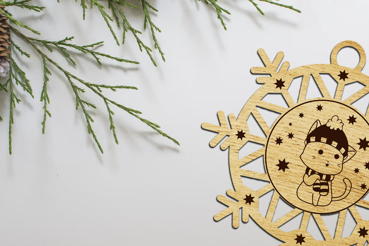 Intra απο ξύλο plywood 3mm-4mm πάχος Πρότυπο στολίδι χριστουγεννιάτικο δέντρο γάτα Δίασταση 4×4 cm INTRAFABR-108814509