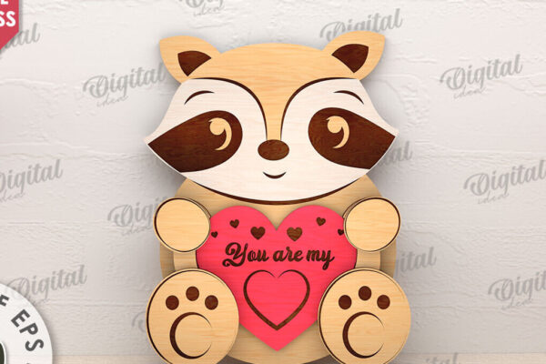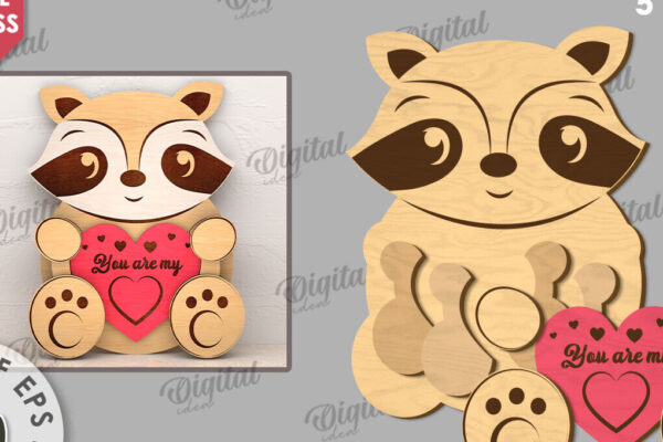 Intra απο ξύλο plywood 3mm-4mm πάχος – Ρακούν Αγίου Βαλεντίνου με καρδιάς Δίασταση 20×20 cm INTRAFABR-114206142