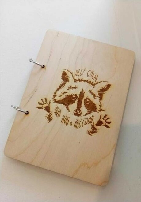 Intra απο ξύλο plywood 3mm-4mm πάχος – Ρακούν χάραξης λέιζερ σε σημειωματάριο Δίασταση 30×30 cm Intraeaxys-r1z26yw1