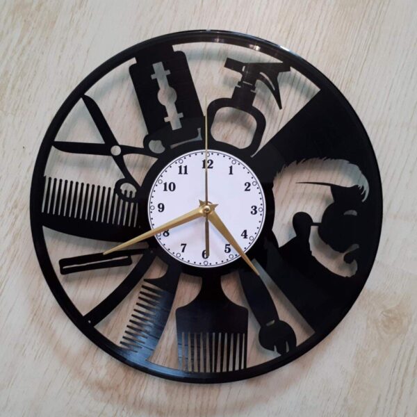 Intra απο ξύλο plywood 3mm-4mm πάχος – Ρολόι δίσκου βινυλίου Barber Shop Δίασταση 30×30 cm Intraeaxys-6o3yrwk7