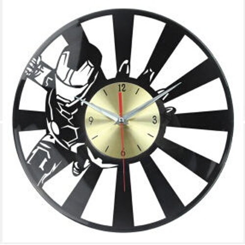 Intra απο ξύλο plywood 3mm-4mm πάχος – Ρολόι τοίχου με δίσκους βινυλίου Iron Man Δίασταση 30×30 cm Intraeaxys-r1z2zwp1
