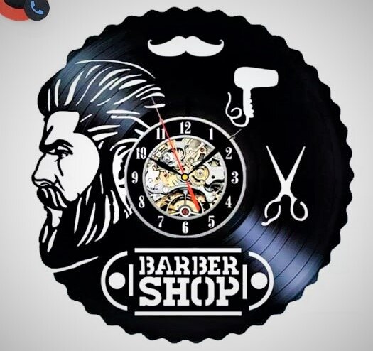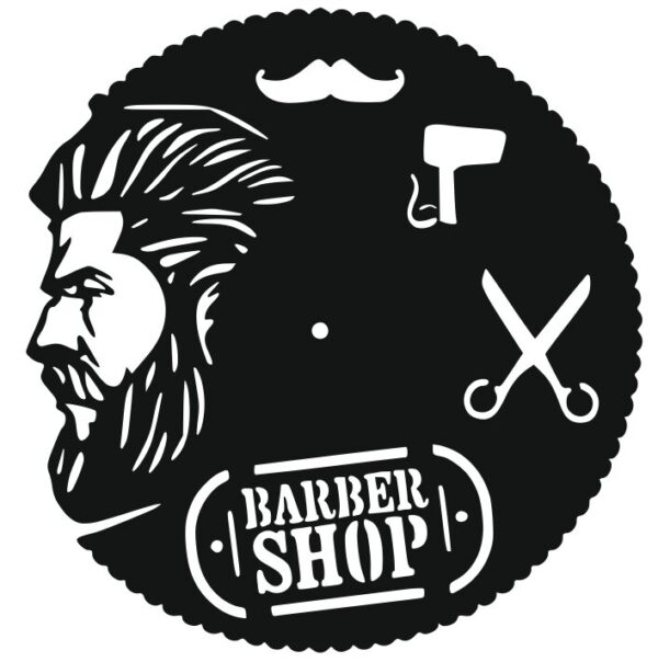 Intra απο ξύλο plywood 3mm-4mm πάχος – Ρολόι τοίχου με σχέδιο βινυλίου κουρείου Δίασταση 30×30 cm Intraeaxys-eoxldqxo
