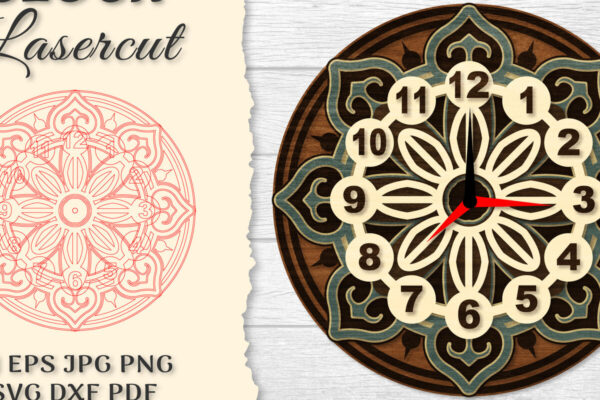 Intra απο ξύλο plywood Χρώμα wenge 3mm-4mm πάχος – Ρολόι Mandala Lasercut BNDLES Δίασταση 30×30 cm INTRAFABR-122536951