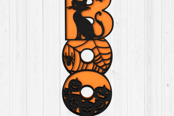 Intra απο ξύλο plywood Χρώμα wenge 3mm-4mm πάχος – Σήμα αποκριάτικου γάτου BOO 3D Δίασταση 30×20 cm INTRAFABR-17663586