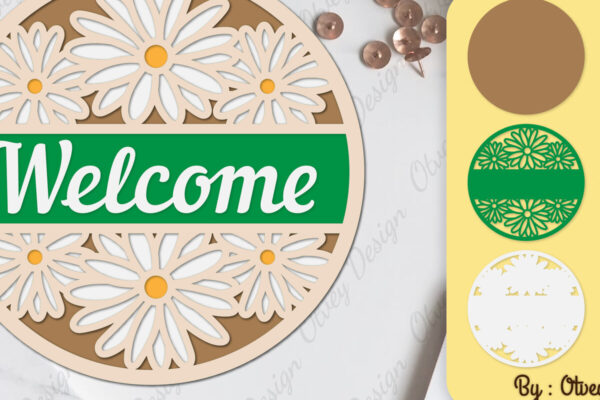 Intra απο ξύλο plywood 3mm-4mm πάχος – Σήμα καλωσορίσματος λουλουδιών Lasercut Δίασταση 30×20 cm INTRAFABR-104130374