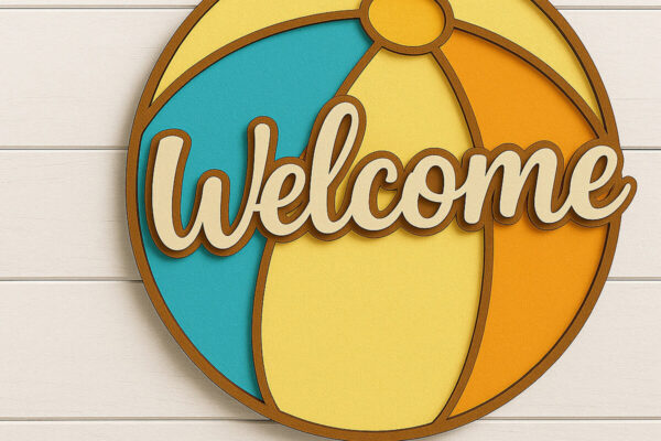 Intra απο ξύλο plywood 3mm-4mm πάχος – Σήμα καλωσορίσματος Summer Beach Ball Δίασταση 20×20 cm INTRAFABR-122866991