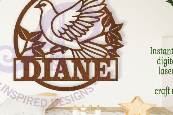 Intra απο ξύλο plywood 3mm-4mm πάχος – Σήμα ονόματος Laser με θέμα Dove Δίασταση 30×20 cm INTRAFABR-106030039