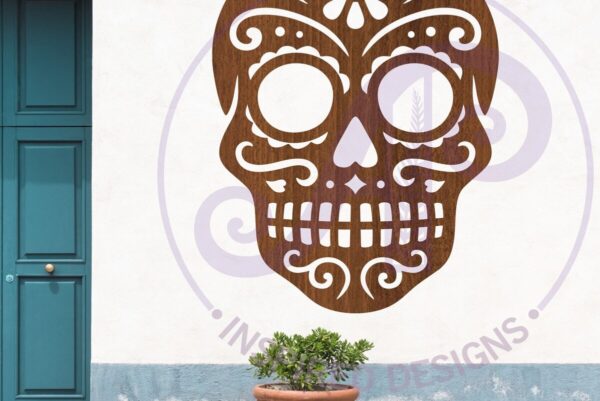 Intra απο ξύλο plywood 3mm-4mm πάχος – Σήμα τοίχου με λεπτομερή αποκοπή 1. Sugar Skull Δίασταση 40×30 cm INTRAFABR-123701084