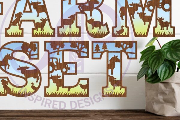 Intra απο ξύλο plywood Χρώμα wenge 3mm-4mm πάχος – Σετ αλφαβήτου με θέμα το αγρόκτημα. 2 Επίπεδο 59 Δίασταση 30×20 cm INTRAFABR-23652478
