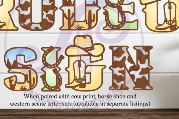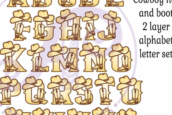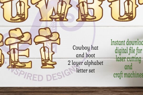 Intra απο ξύλο plywood Χρώμα wenge 3mm-4mm πάχος – Σετ αλφαβήτου με καπέλο και μπότα γράμματα καουμπόη Δίασταση 30×20 cm INTRAFABR-57053941