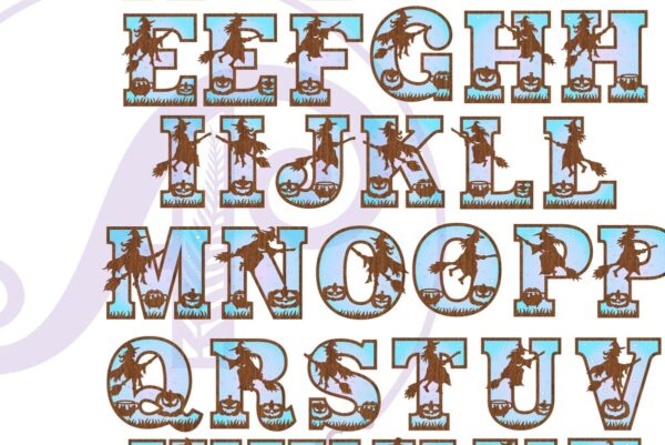 Intra απο ξύλο plywood 3mm-4mm πάχος – Σετ γραμμάτων αλφάβητου Witches Halloween 35 Δίασταση 20×20 cm INTRAFABR-80038879