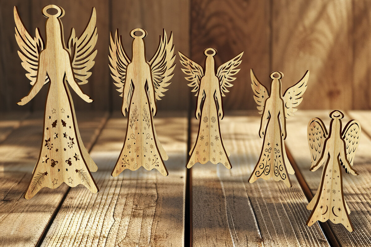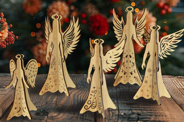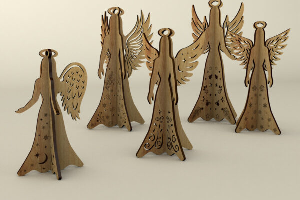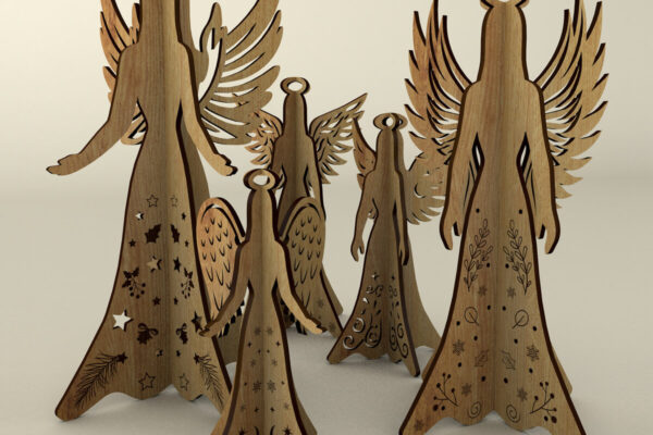 Intra απο ξύλο plywood 3mm-4mm πάχος – Σετ Ξύλινα Διακοσμητικά Άγγελοι Δίασταση 20×20 cm INTRAFABR-110619981