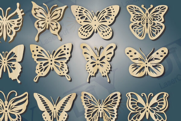 Intra απο ξύλο plywood 3mm-4mm πάχος – Σετ 12 Διακοσμητικές Πεταλούδες Δίασταση 20×20 cm INTRAFABR-114904801
