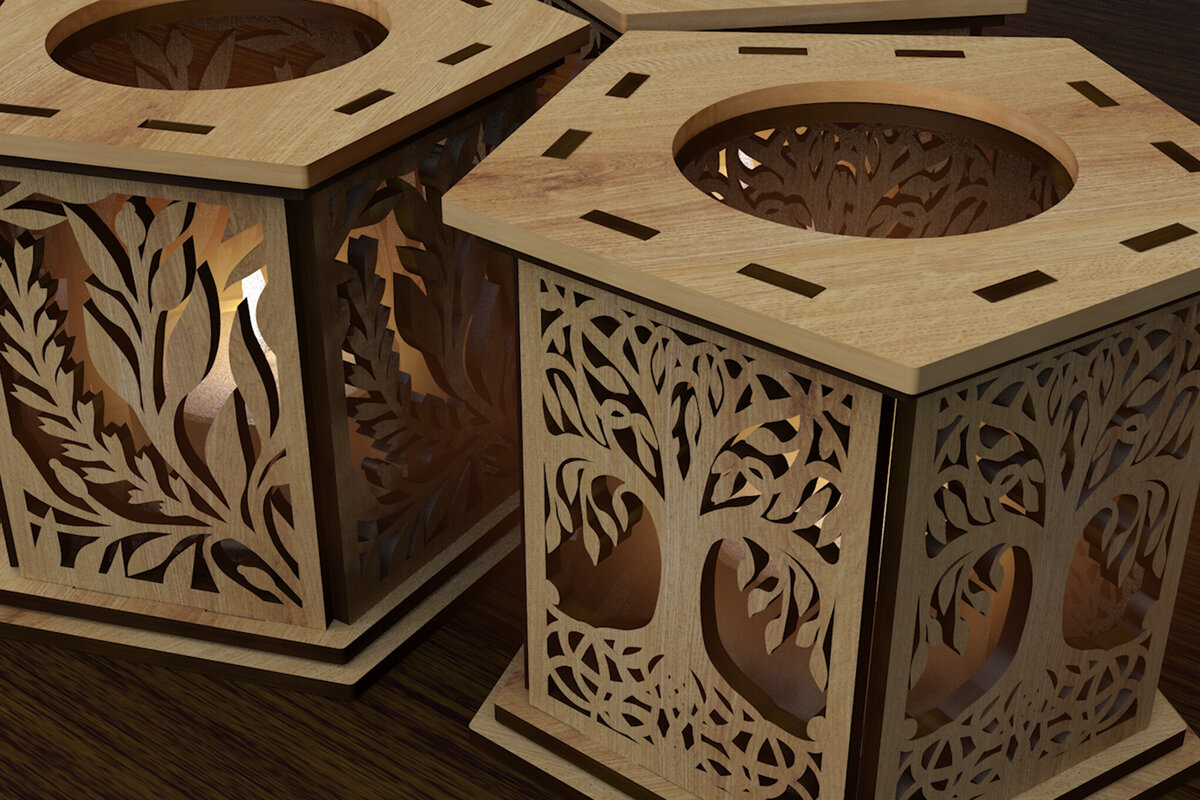 Intra απο ξύλο plywood 3mm-4mm πάχος – Σετ 3 Κηροπήγια Δίασταση 20×20 cm INTRAFABR-108890513