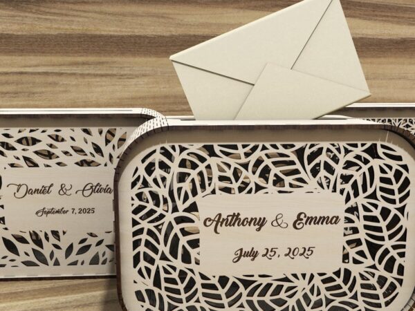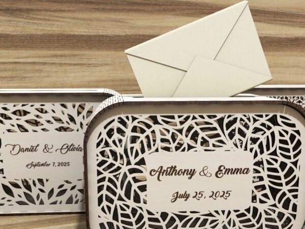 Intra απο ξύλο plywood 3mm-4mm πάχος – Σετ 3 προσωποποιημένων κουτιών με κάρτες γάμου Δίασταση 20×20 cm INTRAFABR-115720719