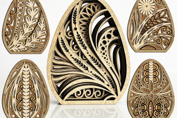 Intra απο ξύλο plywood 3mm-4mm πάχος – Σετ 5 πολυστρωματικών πασχαλινών αυγών πρότυπο Δίασταση 20×20 cm INTRAFABR-115240252