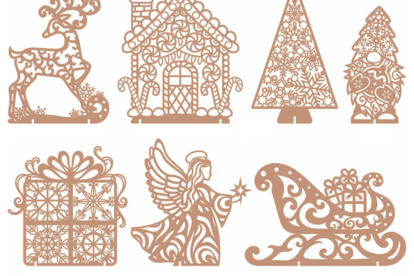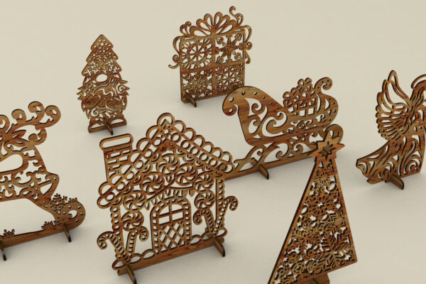 Intra απο ξύλο plywood 3mm-4mm πάχος – Σετ 7 Ξύλινα Χριστουγεννιάτικα Διακοσμητικά Δίασταση 20×20 cm INTRAFABR-110538721