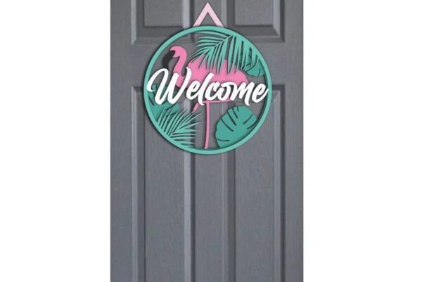 Intra απο ξύλο plywood 3mm-4mm πάχος – Σημάδι καλωσορίσματος Flamingo Δίασταση 20×20 cm INTRAFABR-32035487