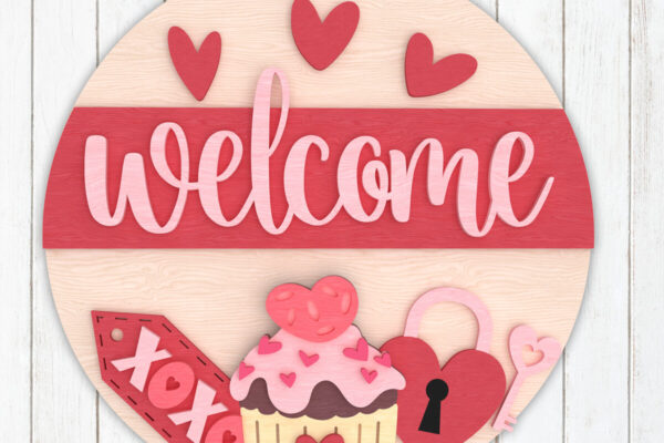 Intra απο ξύλο plywood 3mm-4mm πάχος – Σημάδι καλωσορίσματος Αγίου Βαλεντίνου με Cupcake Δίασταση 20×20 cm INTRAFABR-110274078