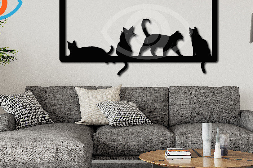 Intra απο ξύλο plywood 3mm-4mm πάχος Σιλουέτα διακόσμησης τοίχου μαύρης γάτας Δίασταση 40×40 cm INTRAFABR-64250801