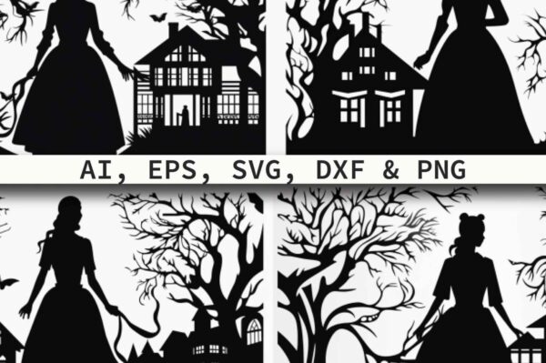 Intra απο ξύλο plywood 3mm-4mm πάχος – Σιλουέτες ενός κοριτσιού στο δάσος σύνολο Δίασταση 20×20 cm INTRAFABR-80694572
