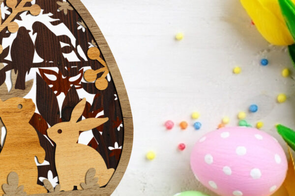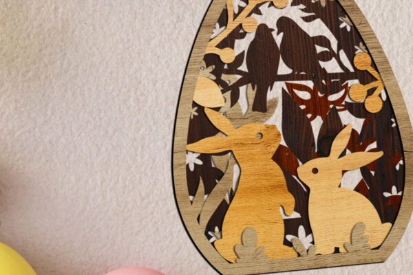 Intra απο ξύλο plywood Χρώμα wenge 3mm-4mm πάχος – Σιλουέτες λαγουδάκι πασχαλινό αυγό, διακοσμητικά Δίασταση 4×5 cm INTRAFABR-91889479