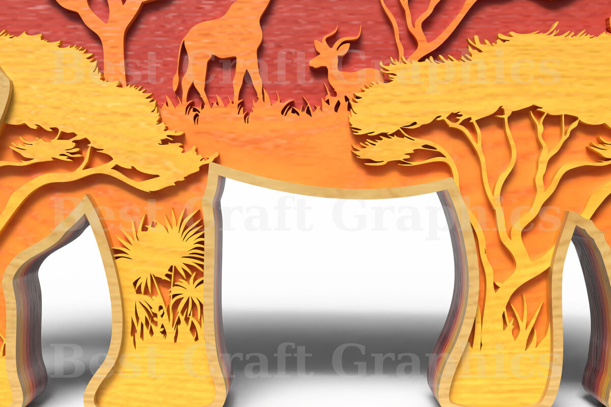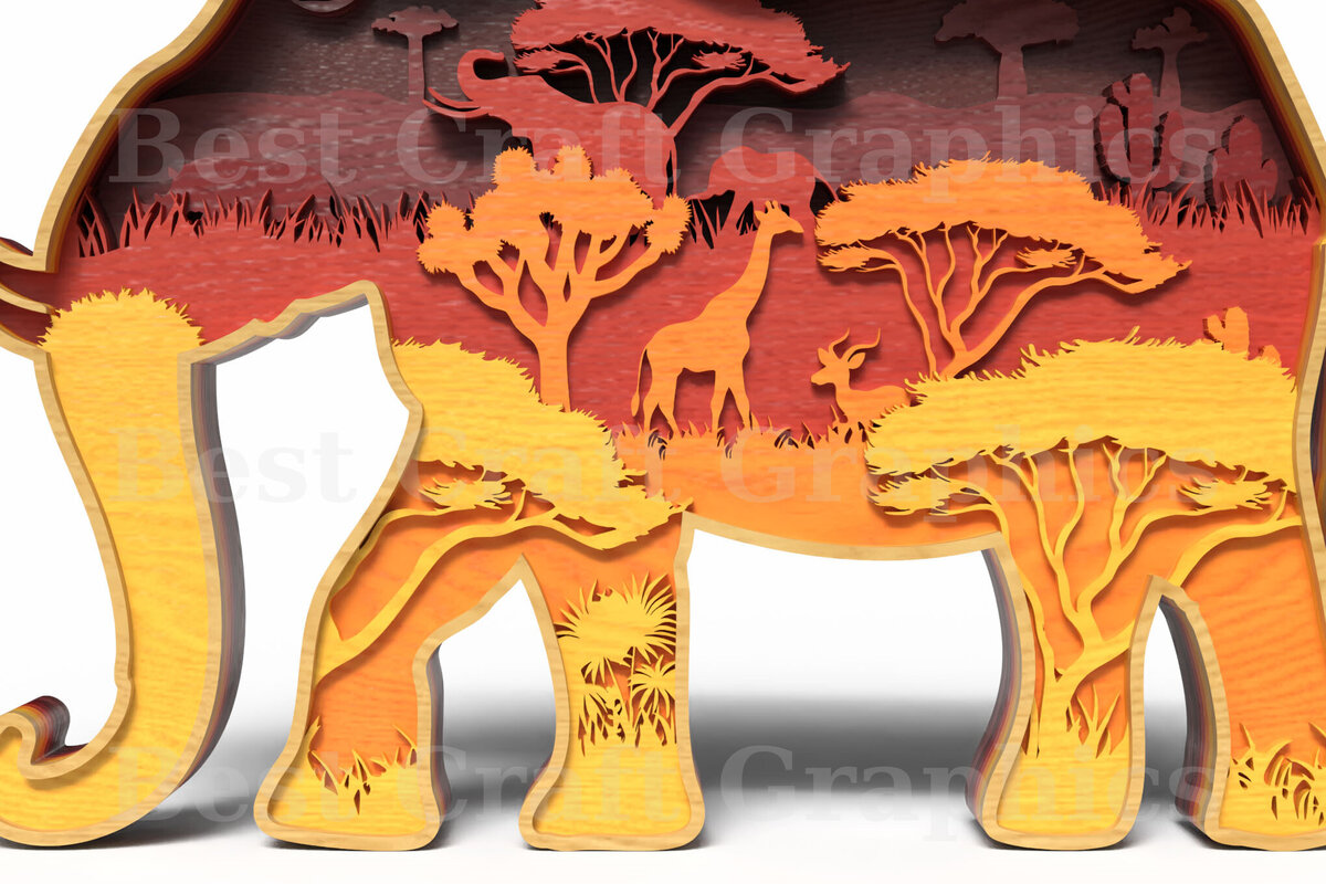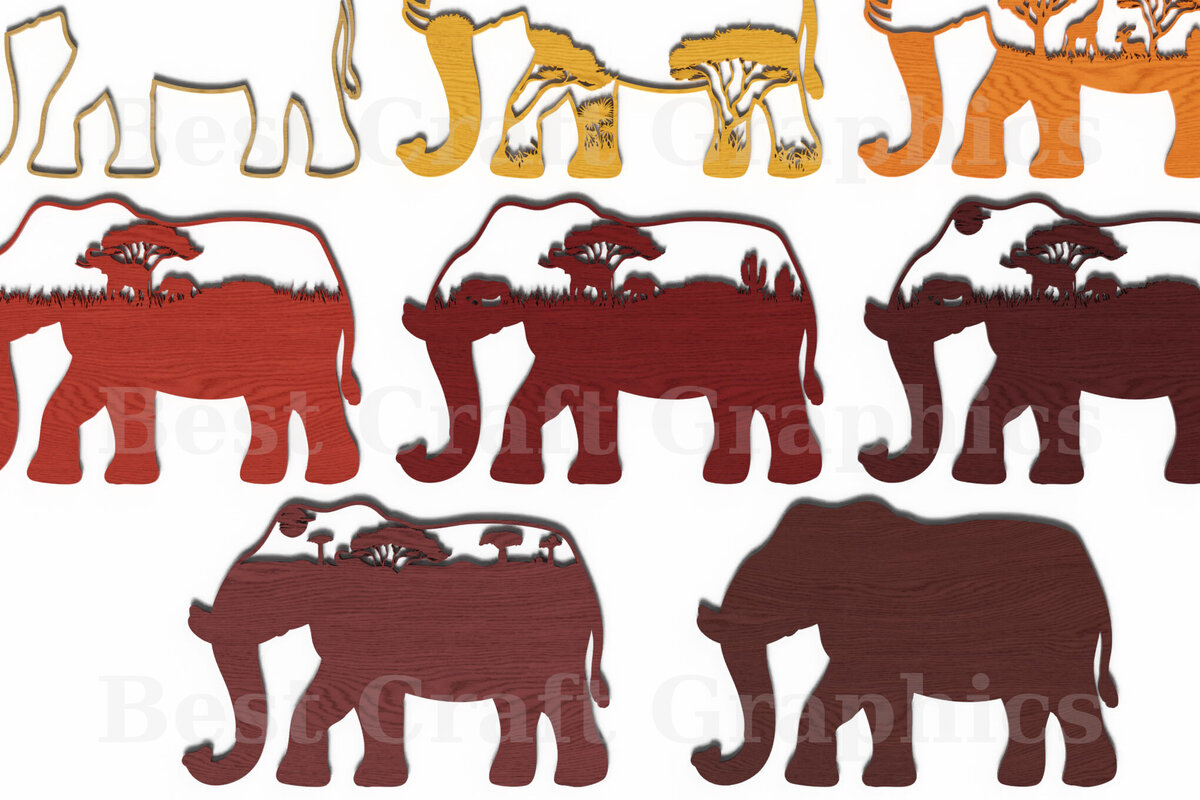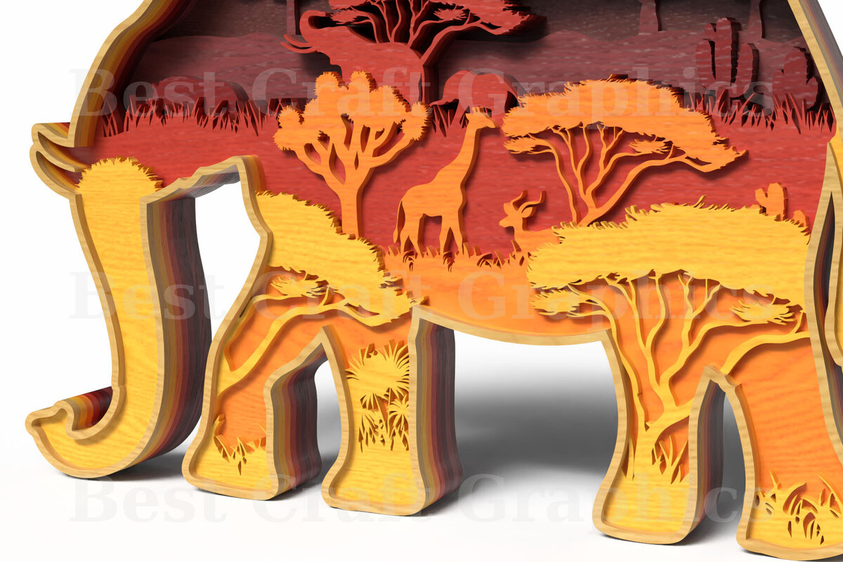 Intra απο ξύλο plywood 3mm-4mm πάχος Σκηνή σαφάρι με 3D επίπεδα ελέφαντα Δίασταση 20×30 cm INTRAFABR-121580098
