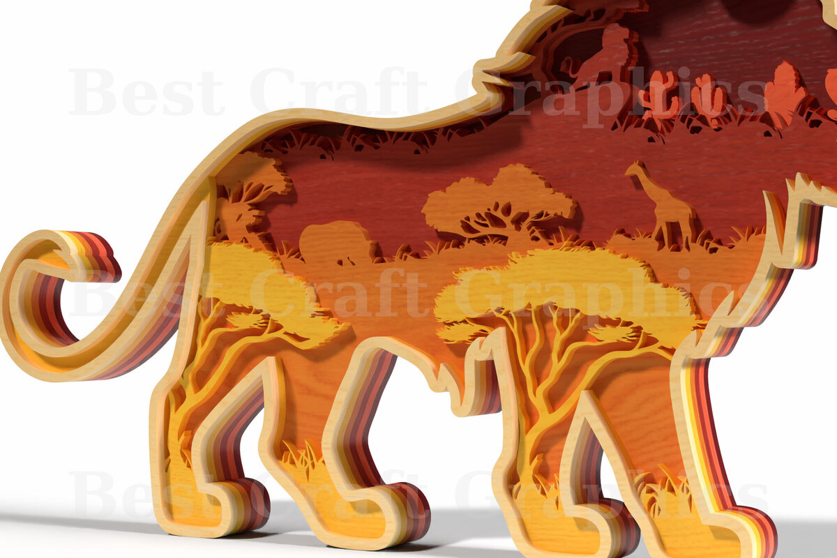 Intra απο ξύλο plywood 3mm-4mm πάχος Σκηνή σαφάρι 3D Layered Lion Δίασταση 40×40 cm INTRAFABR-121580015