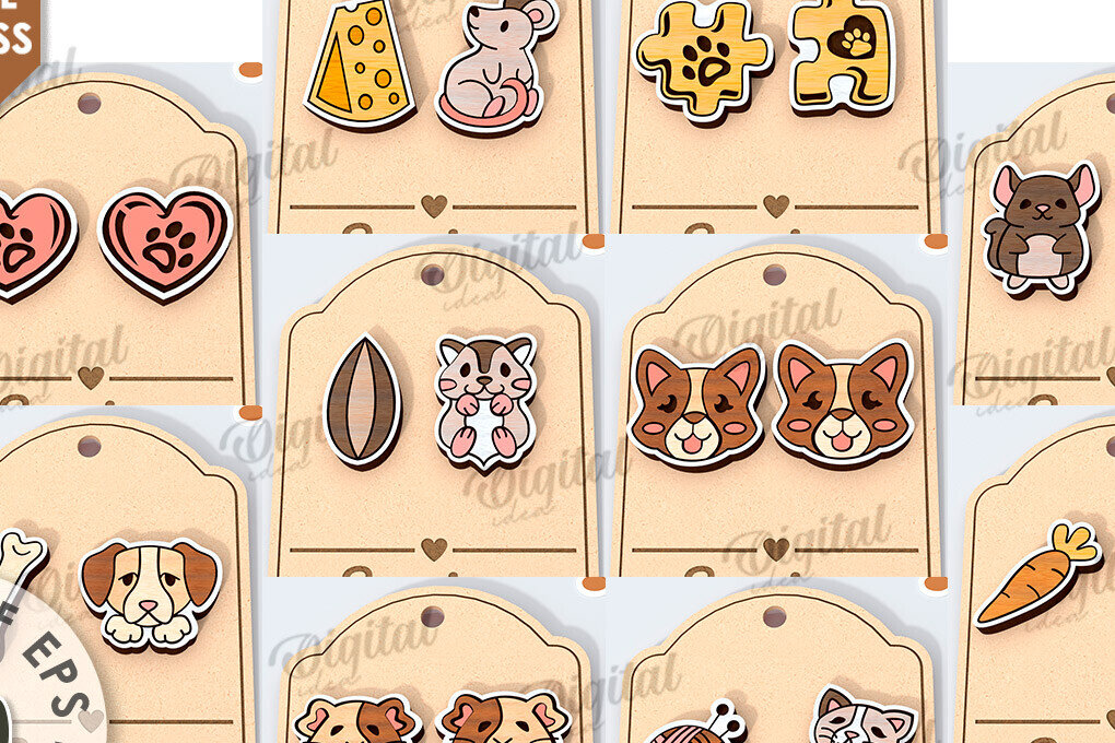 Intra απο ξύλο plywood 3mm-4mm πάχος – Σκουλαρίκια για κατοικίδια Πακέτο κοπής με λέιζερ Δίασταση 5×5 cm INTRAFABR-115295395
