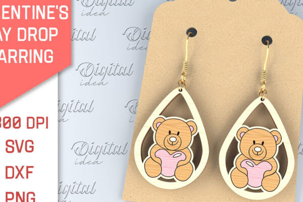 Intra απο ξύλο plywood 3mm-4mm πάχος – Σκουλαρίκια για την Ημέρα του Αγίου Βαλεντίνου Δίασταση 5×5 cm INTRAFABR-87753400