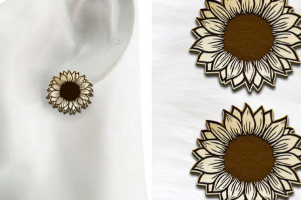 Intra απο ξύλο plywood 3mm-4mm πάχος – Σκουλαρίκια ηλίανθου Boho με λέιζερ. Δίασταση 5×5 cm INTRAFABR-123387940