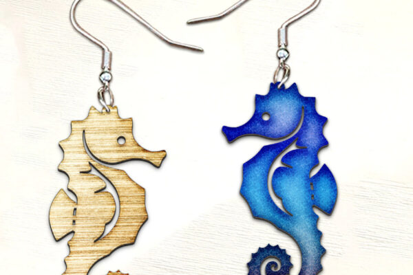Intra απο ξύλο plywood 3mm-4mm πάχος – Σκουλαρίκια Ιππόκαμπος. Σκουλαρίκι θάλασσας Δίασταση 5×5 cm INTRAFABR-122534343
