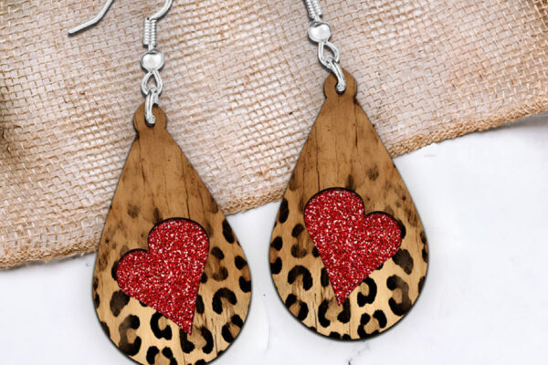 Intra απο ξύλο plywood 3mm-4mm πάχος – Σκουλαρίκια Καρδιά Αγίου Βαλεντίνου κοπής με λέιζερ. Δίασταση 5×5 cm INTRAFABR-112411875