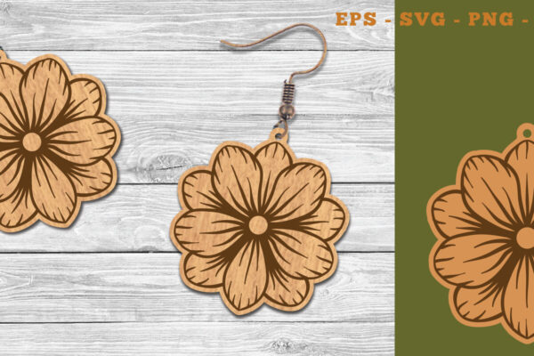 Intra απο ξύλο plywood Χρώμα wenge 3mm-4mm πάχος – Σκουλαρίκια κομμένα με λέιζερ λουλουδιών 2 Δίασταση 3×3 cm INTRAFABR-104050592