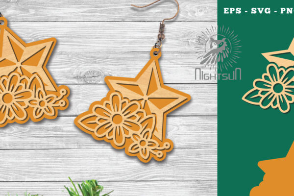 Intra απο ξύλο plywood 3mm-4mm πάχος – Σκουλαρίκια κομμένα με λέιζερ Flowers Star Δίασταση 3×3 cm INTRAFABR-113206139
