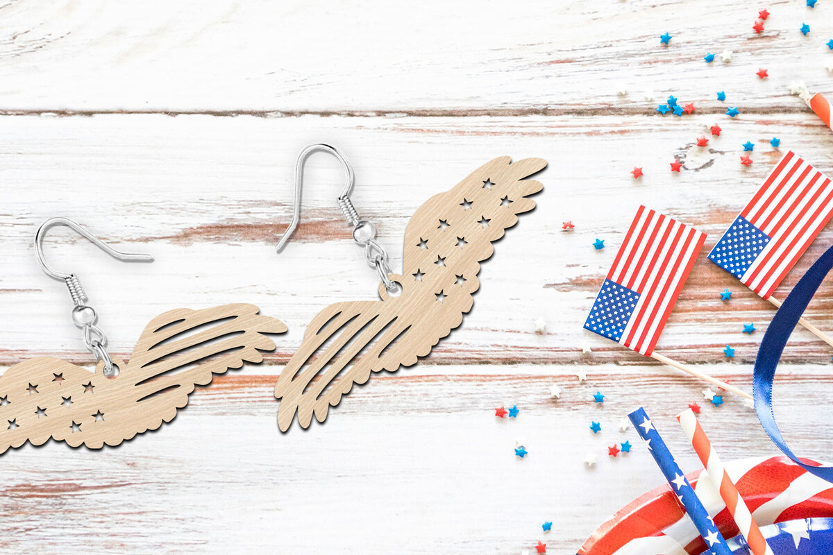 Intra απο ξύλο plywood 3mm-4mm πάχος Σκουλαρίκια λέιζερ American Eagle Patriotic Δίασταση 1×2 cm INTRAFABR-121423436