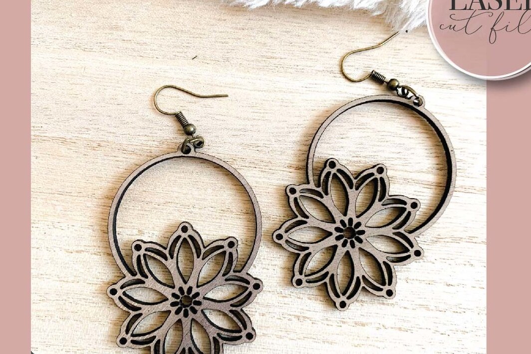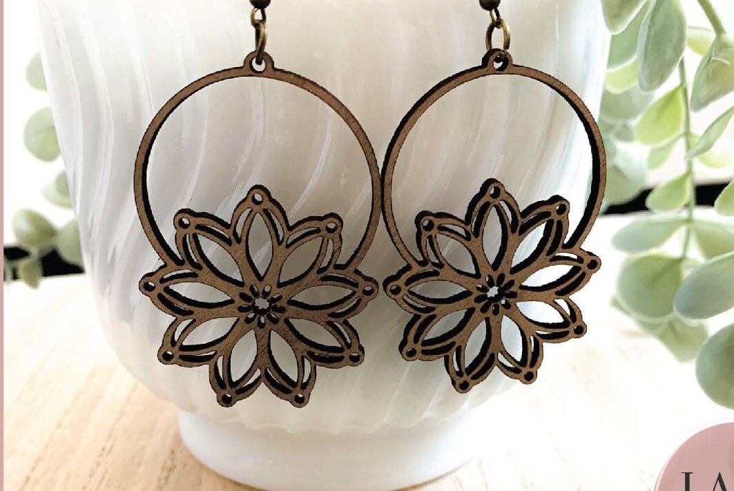 Intra απο ξύλο plywood 3mm-4mm πάχος Σκουλαρίκια λέιζερ Boho Floral Δίασταση 3×3 cm INTRAFABR-73358551